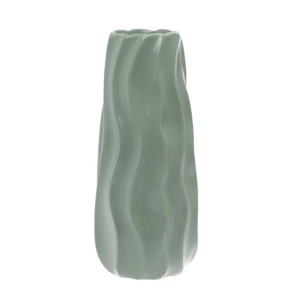 Dekorácia Váza vlnky keramika 13x13x30cm zelená