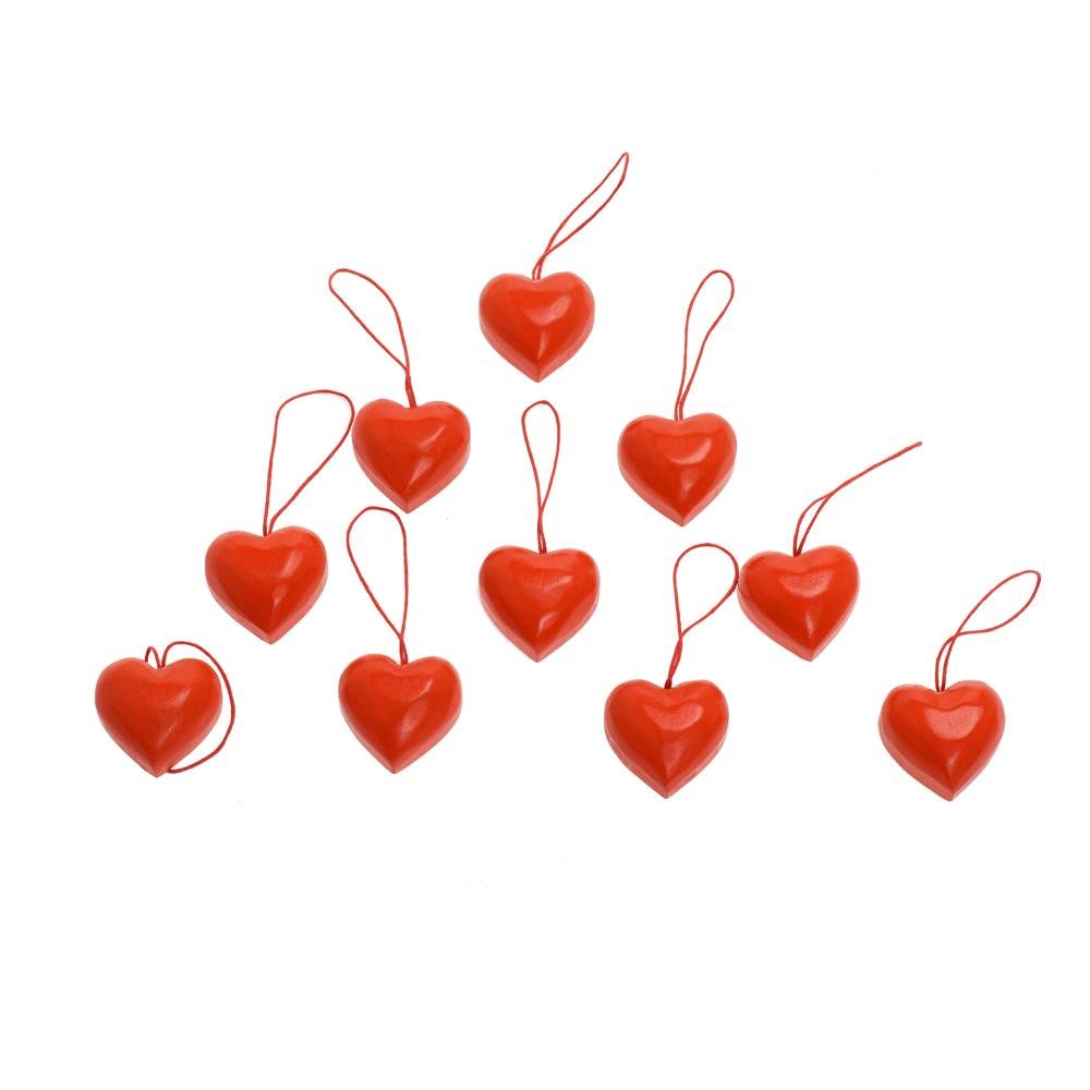 Dekorácia Záves srdiečka červené drevo s/10 4*4*2cm
