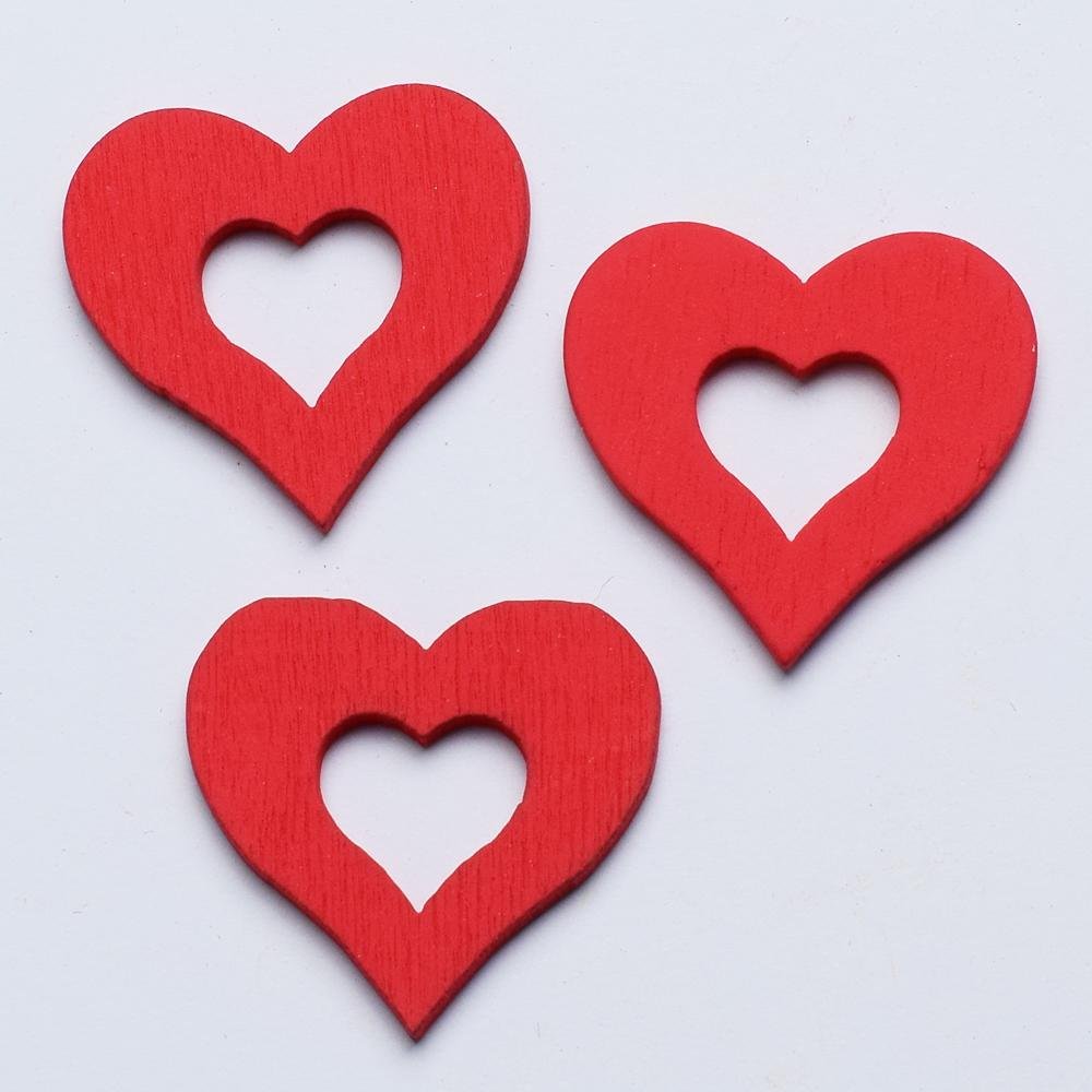 Dekorácia Výrez srdce drev.červené s/40 3cm super cena