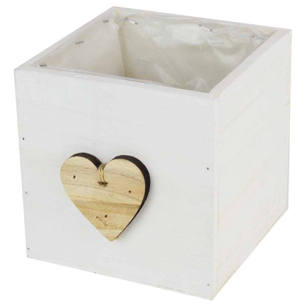 Obal drevo srdce biela 15x15 cm