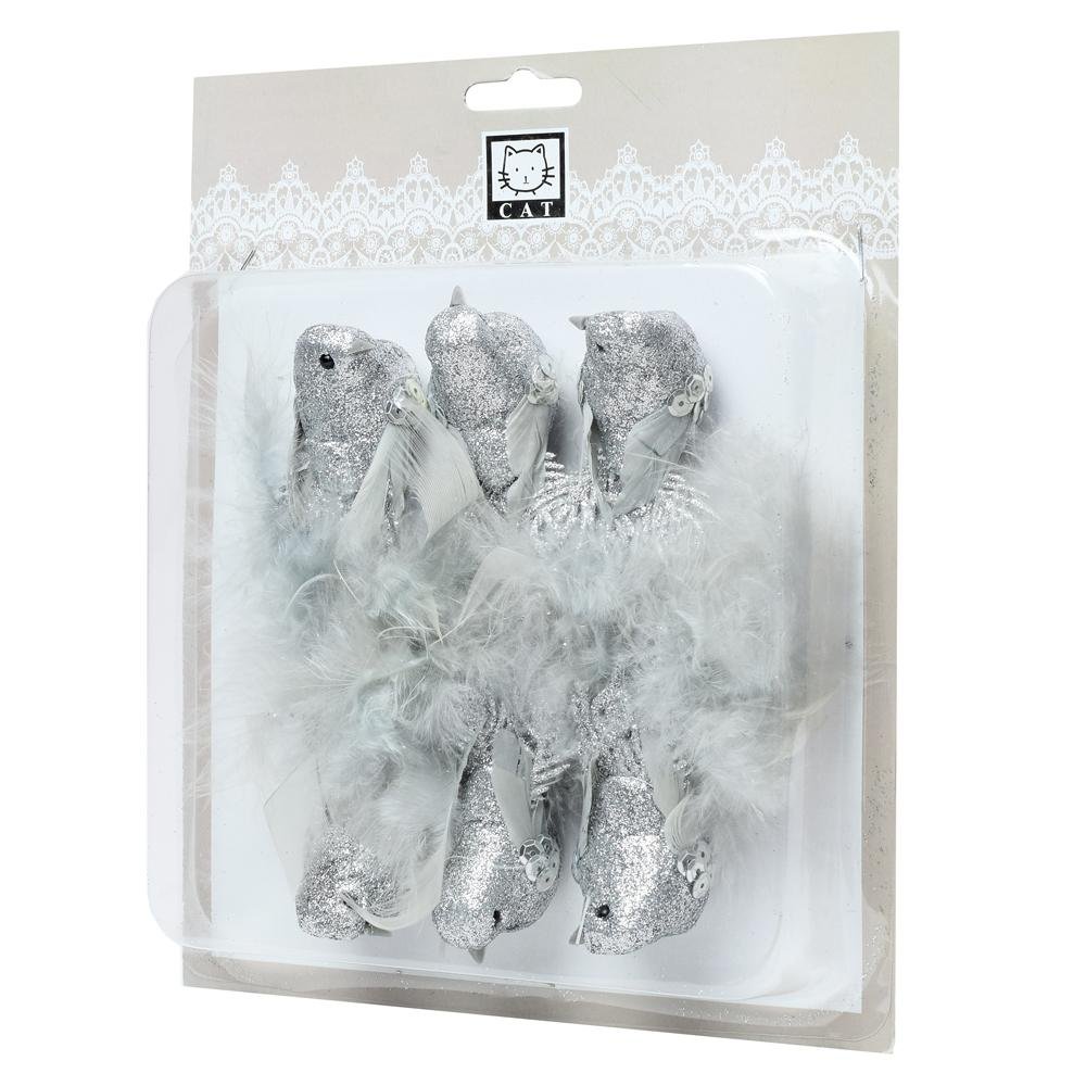 Dekorácia Pta-n150 holub glit.na štipci malý s/6 10cm