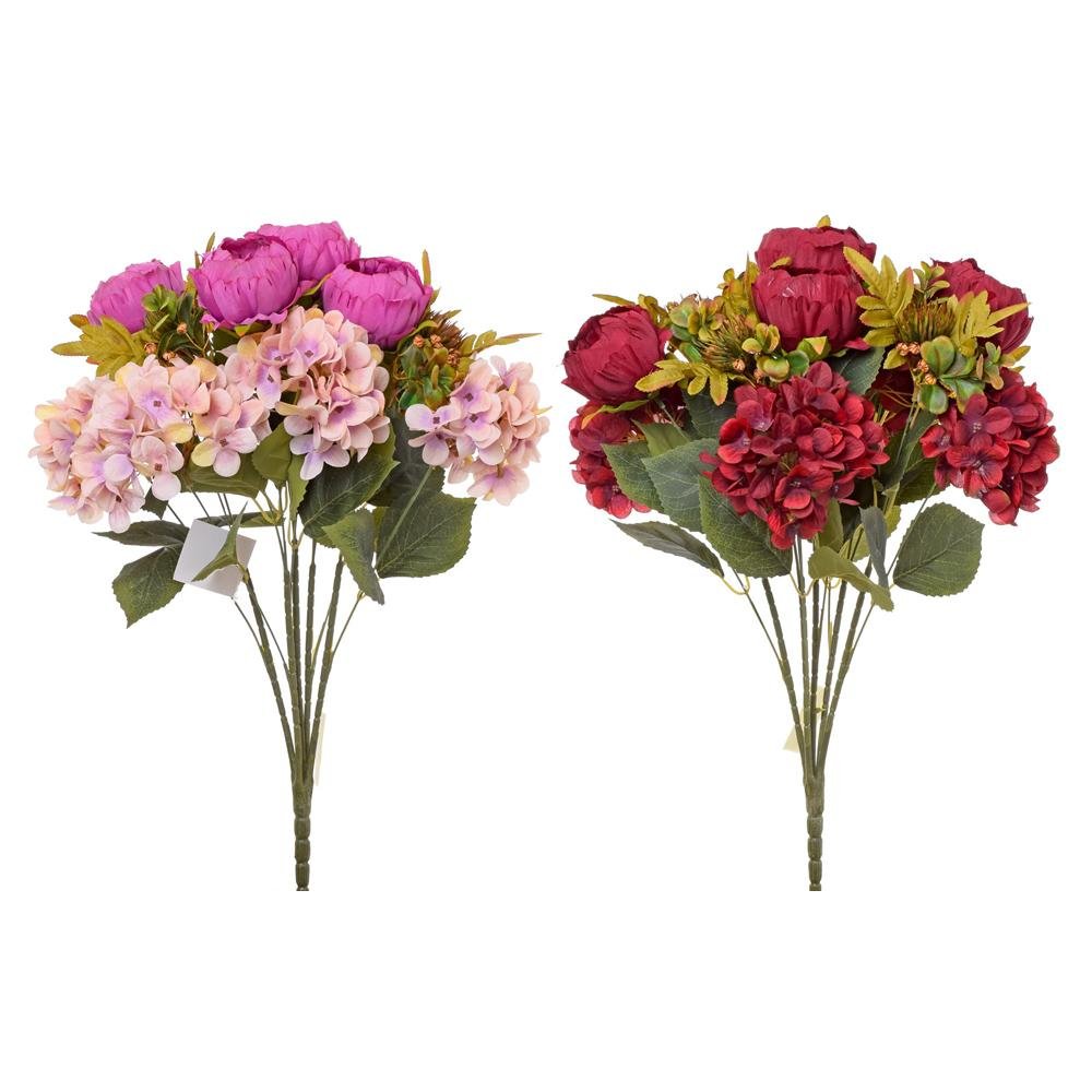Dekorácia Kytica pivonka, hydrangea, bodliak, zeleň mix/2f 60cm