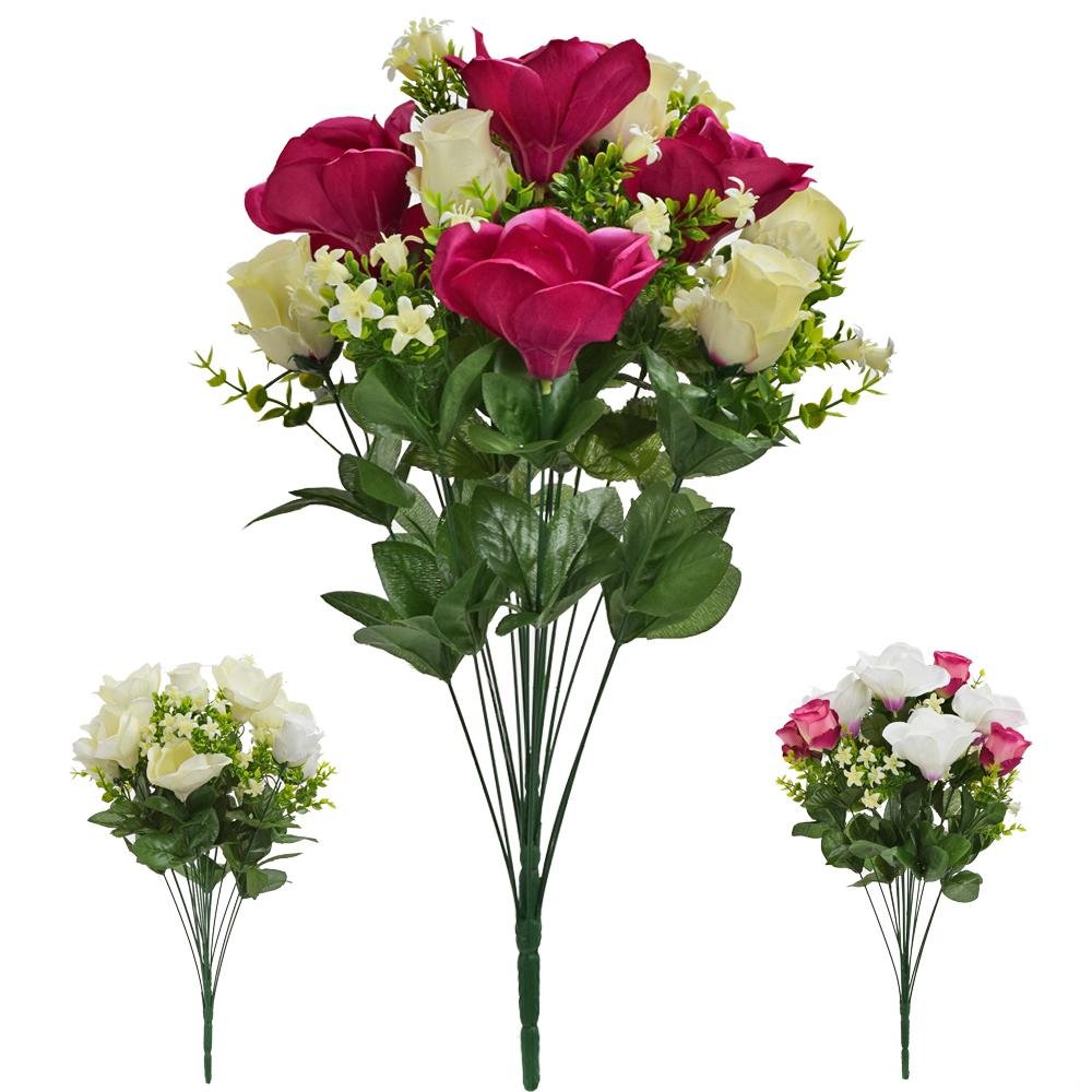 Dekorácia Kytica ruža magnolia margar. x18 mix 3f 60cm cer,pink,cream