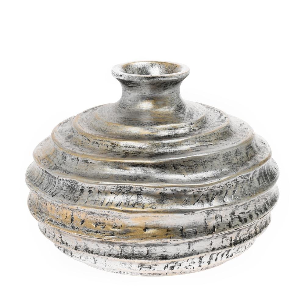 Dekorácia Váza guľatá polyrez m 25x25x19cm strieborná