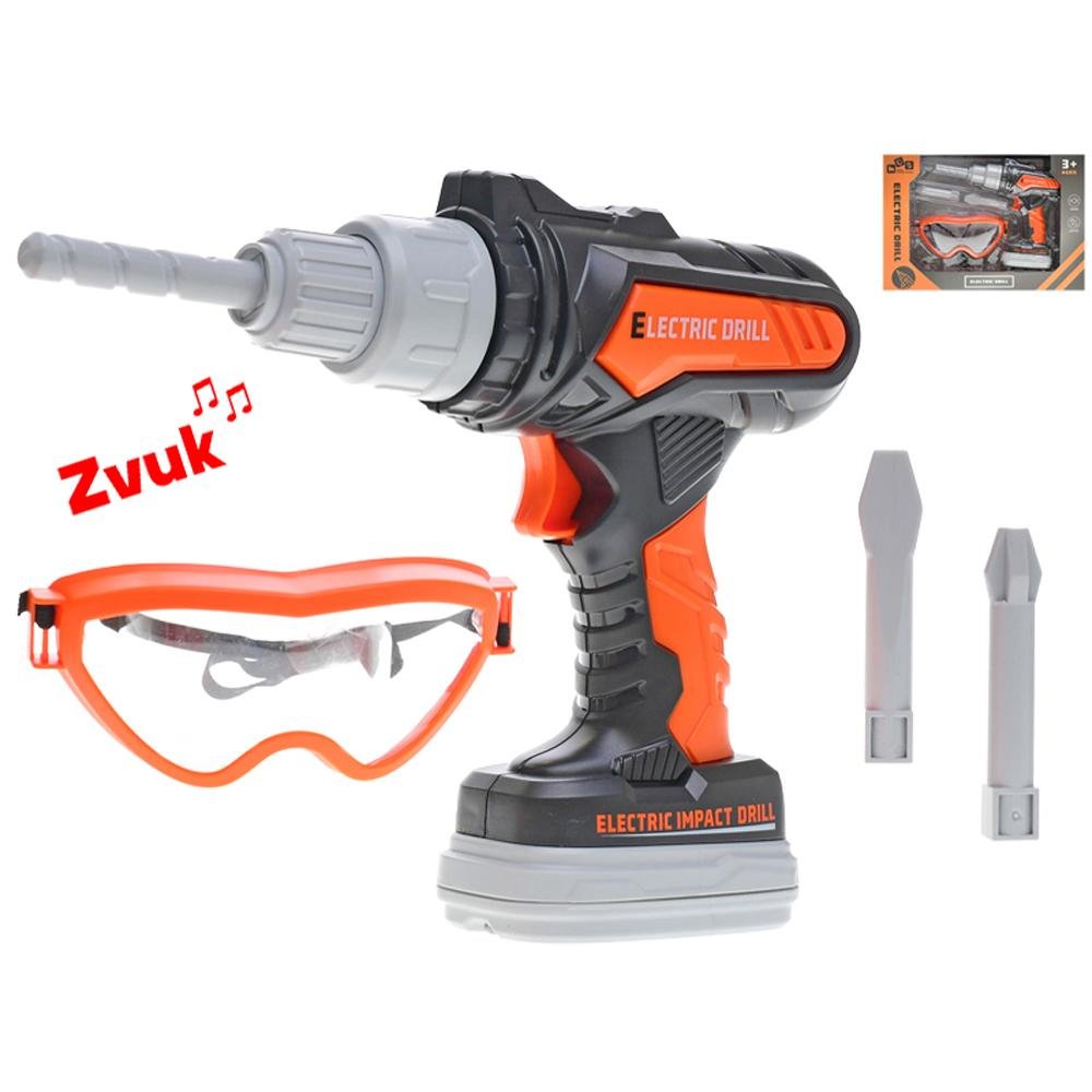 Vŕtačka príklepová 20cm na batétie so zvukom, ochranné okuliare