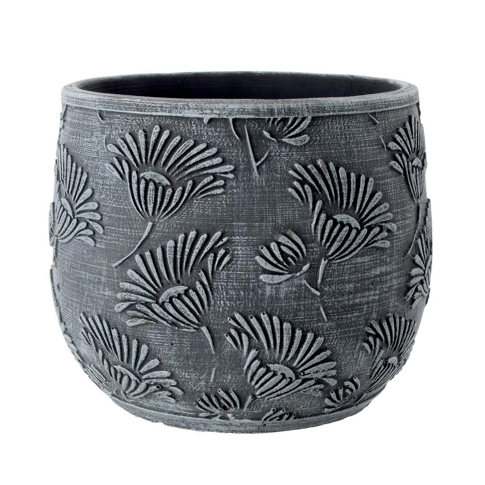 Dekorácia Obal cement kvety šedý 16,5x16,5x13,5cm