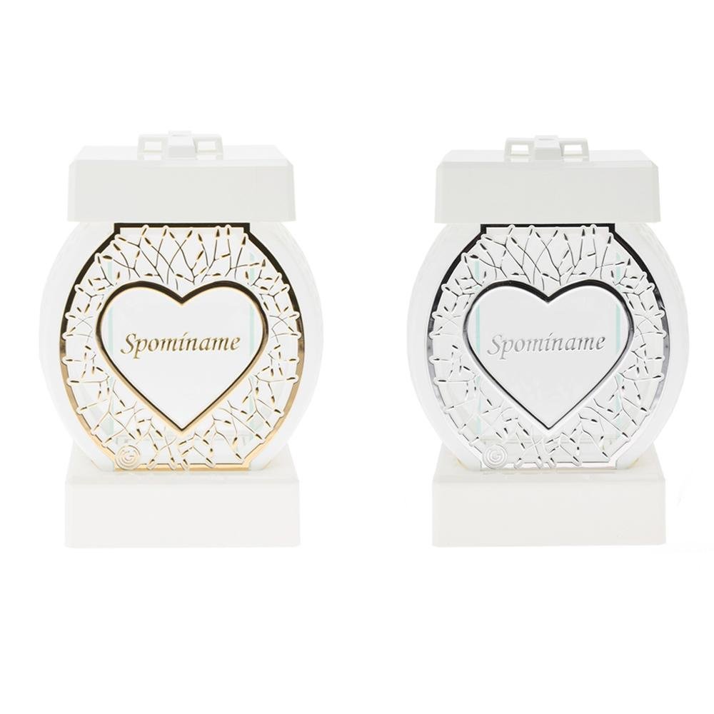 Lampion glamour kruh. srdce spomíname biely /bez náplne/ 28x15x20cm