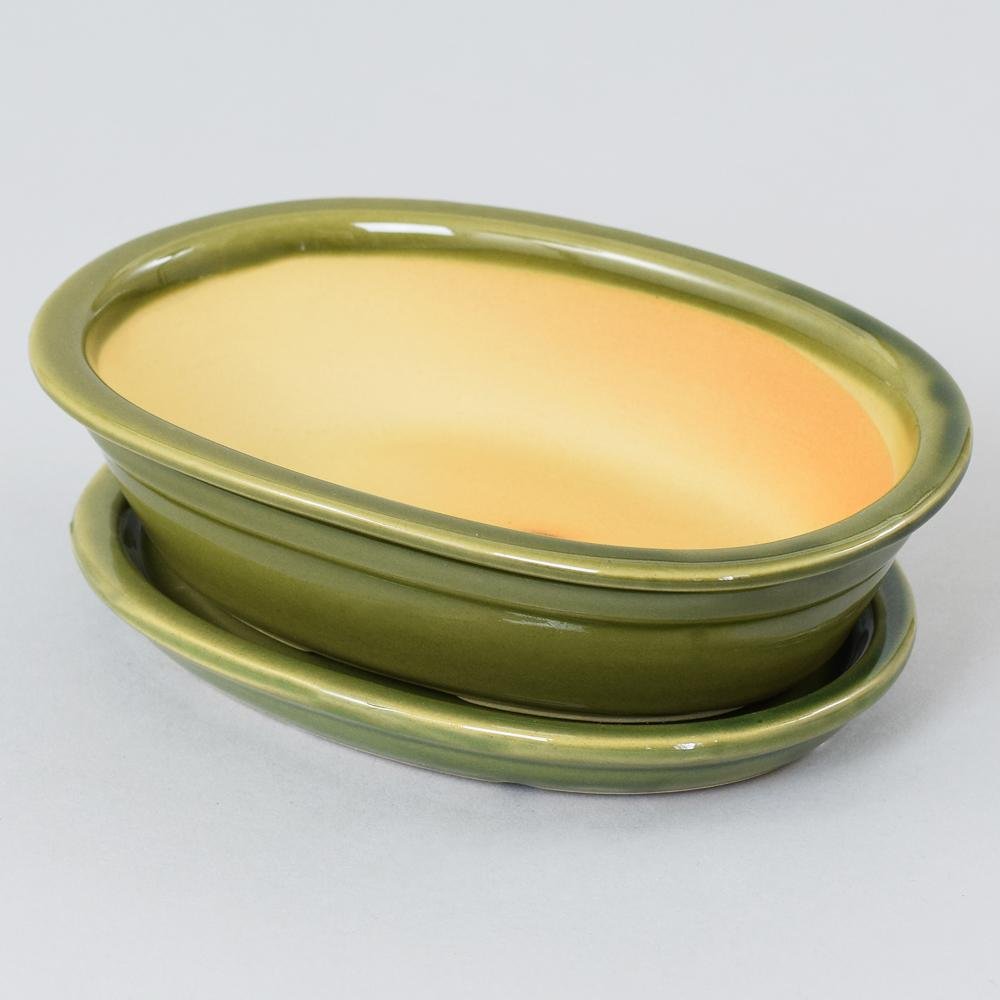 Dekorácia 16.038.19 kvetináč+miska bonsai ovál zelený 19cm /v.5cm/