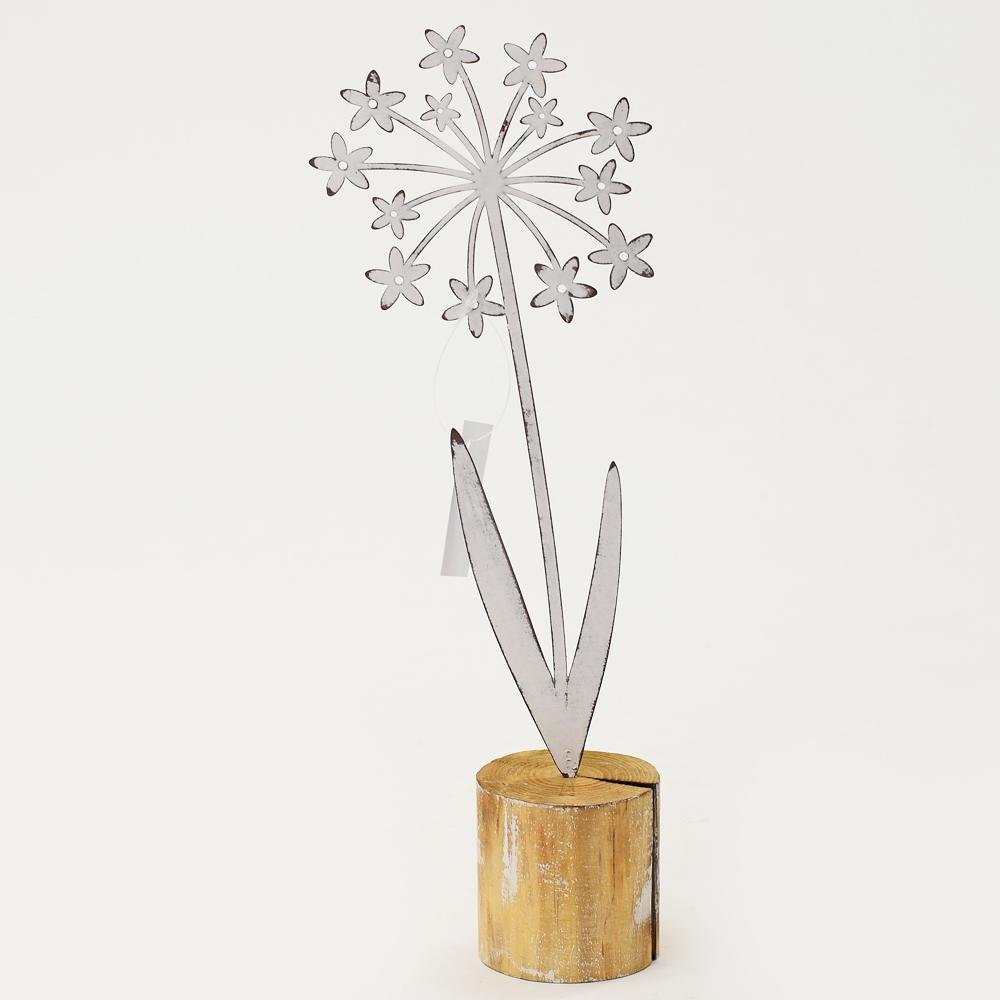 Dekorácia Púpava kov na pníku biela 31x10,5x6,5