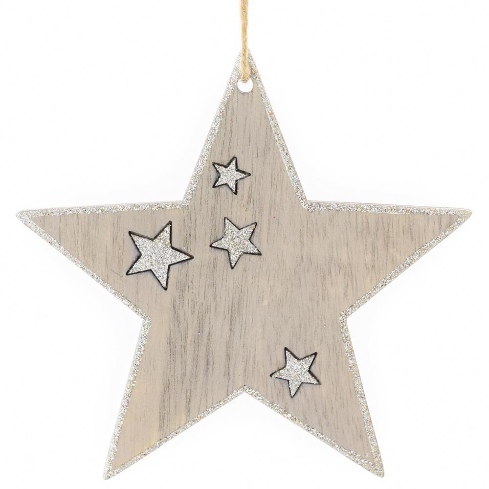 Dekorácia Záves hviezda drevo-strieb. 12,5x12,5x0,5cm