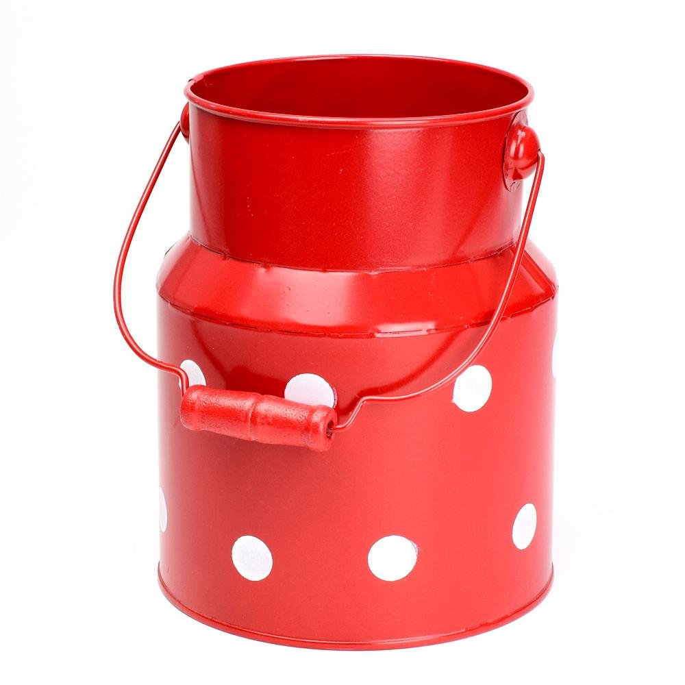 Dekorácia Váza konva s rúčkou kov červená veľké bodky v:18/27,5x12cm super cena