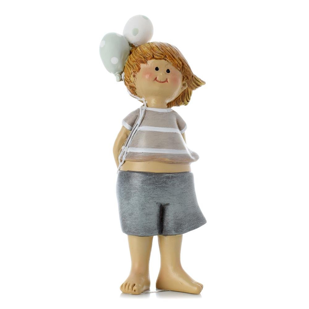 Dekorácia Chlapec béž/siv s balónikmi bie/ment poly 5*3.5*14