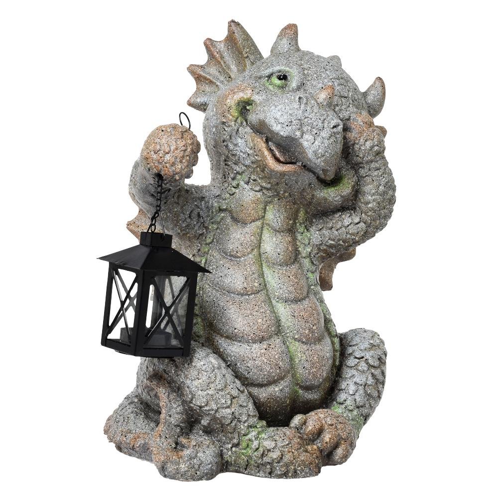 Dráčik s lampášom mgo 28x27x38,5cm šedý