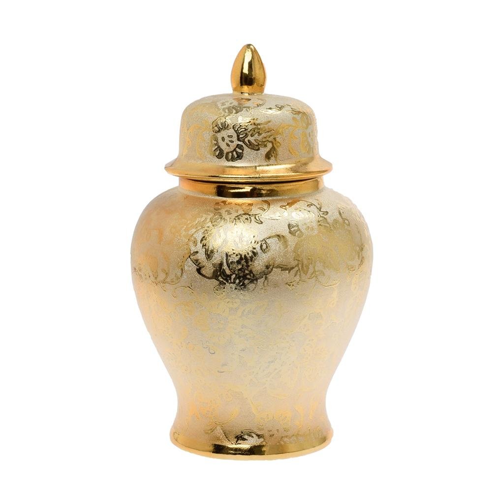 Dekorácia Dóza na suché aranž.s poklopom keram. zlatá 15x15x25cm