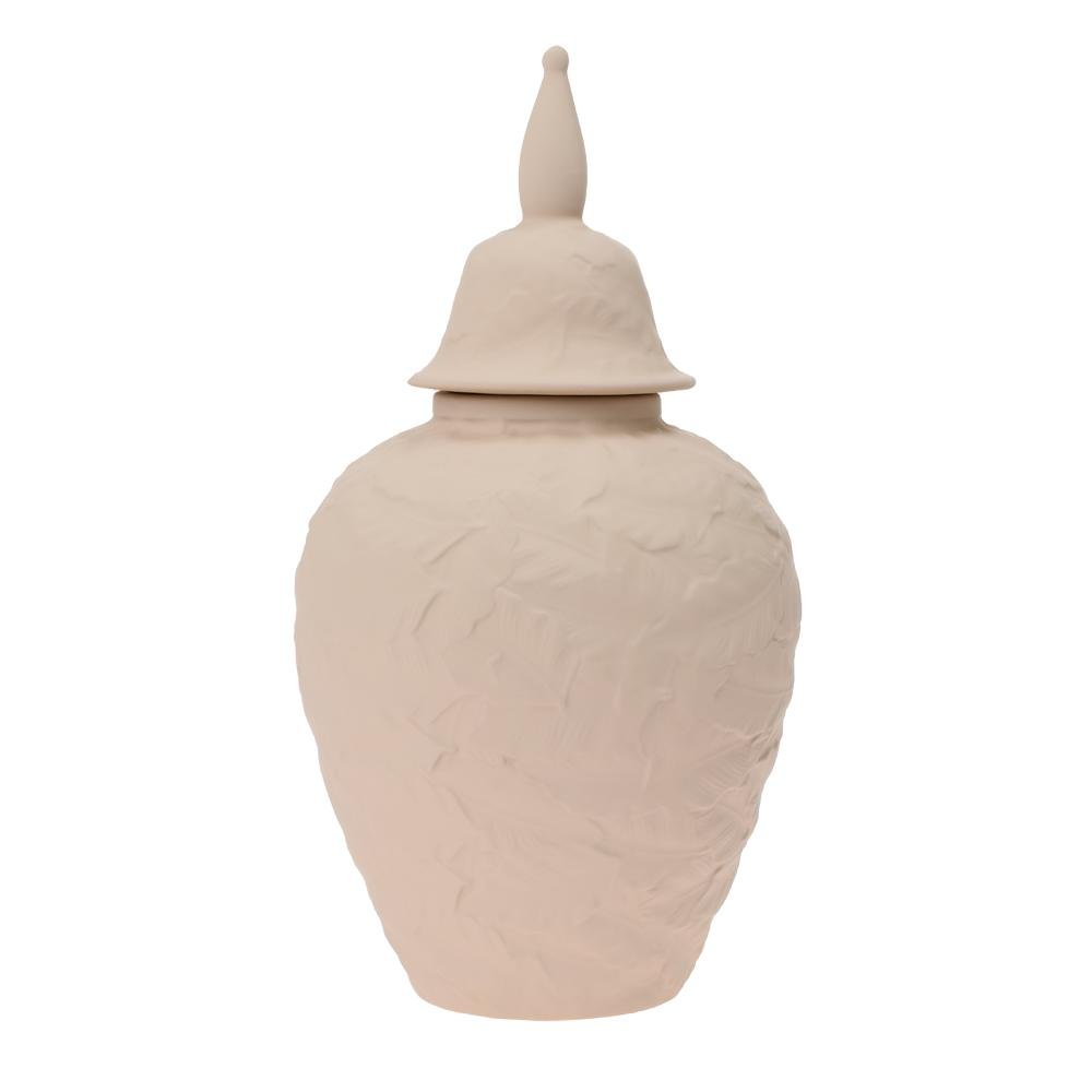 Dekorácia Dóza s poklopom keramika 17x17x32cm béžová
