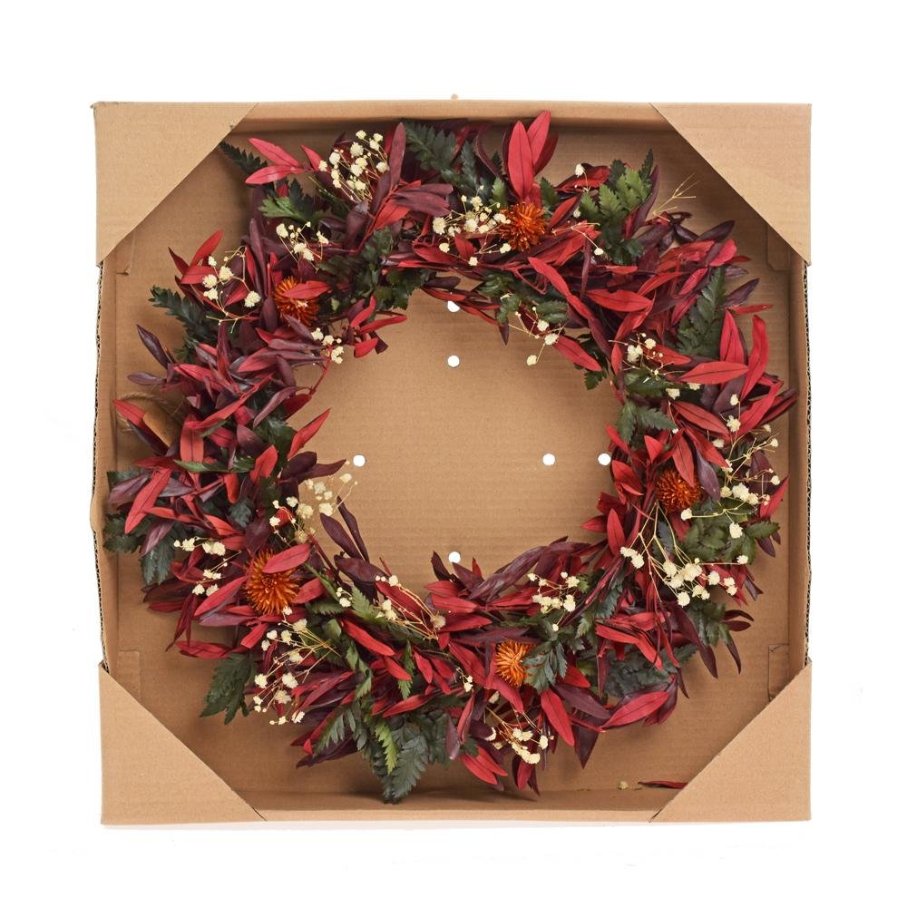 Dekorácia Veniec sušený bielo/bordovo/zelený 46cm
