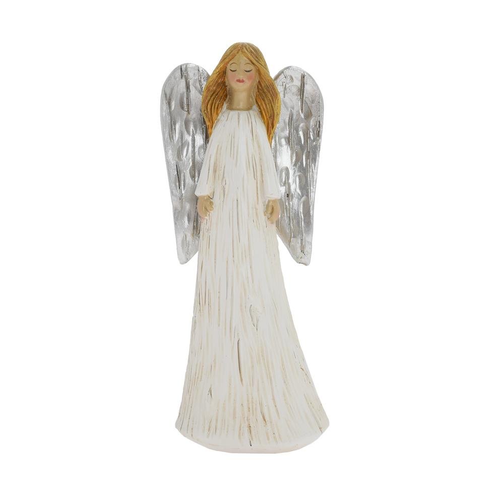 Anjel bielo-strieborný poly 6,5*5*16,5cm