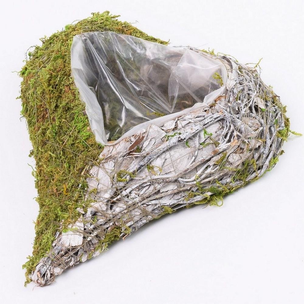 Dekorácia Obal srdce mach bielozelený 21x25x6cm