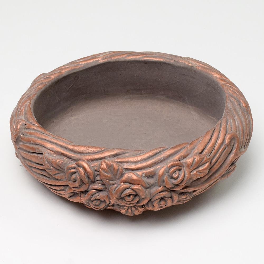 Obal kruh cement šedý s medenou 19x16x6.5cm