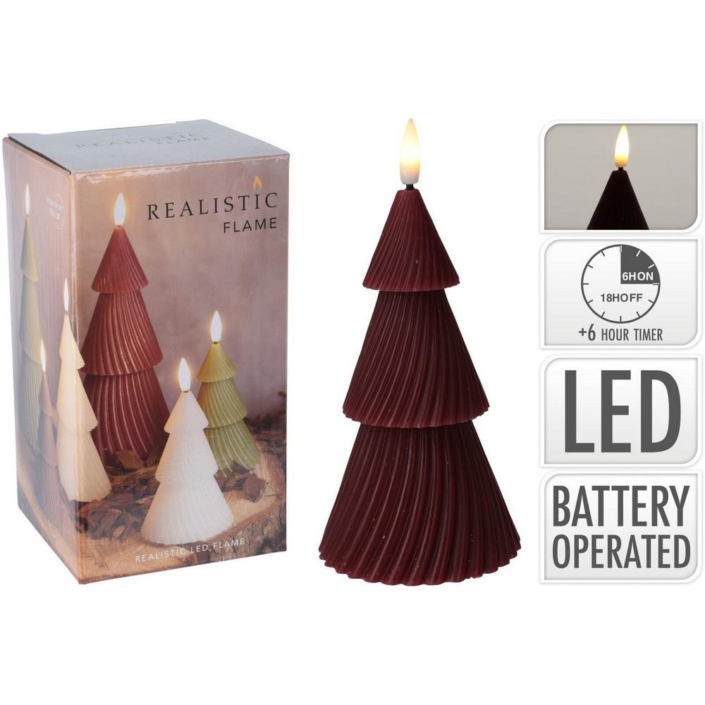 Dekorácia Sviečka led stromček 11cm tmavo červený
