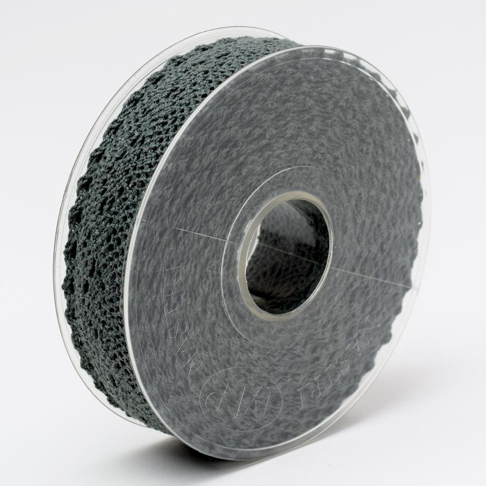 Dekorácia Stuha čipka 25mmx8m tm sivá