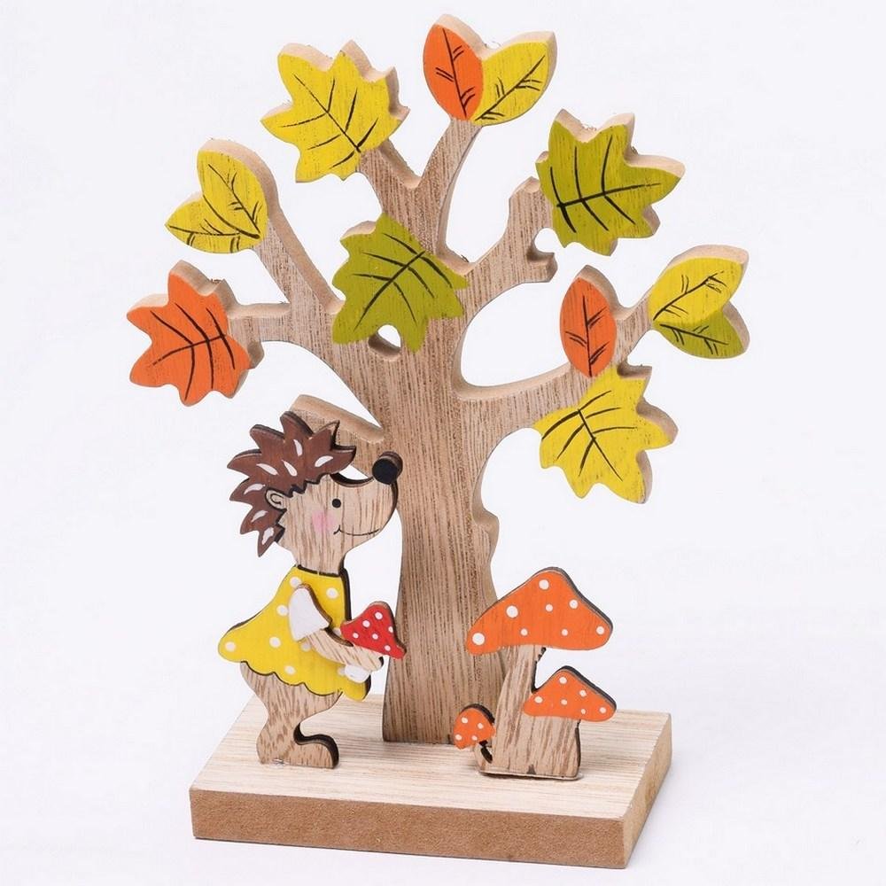 Dekorácia Drev strom+ježko+huby 14x18,5x5,5
