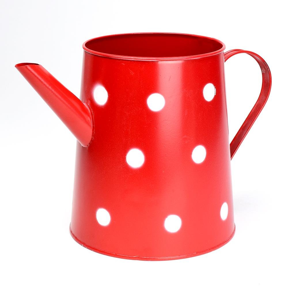 Dekorácia Váza krhla kov červená veľké bodky v:18x13cm super cena