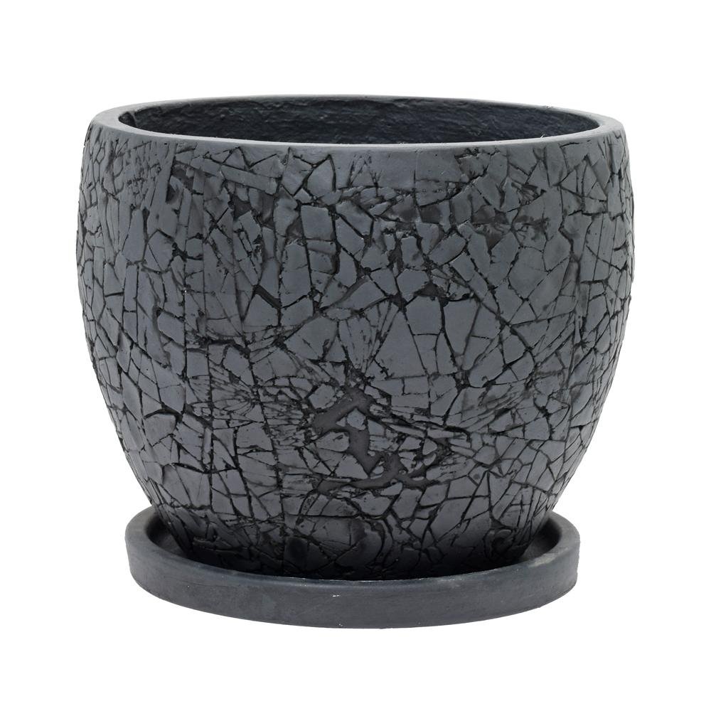 Dekorácia J99 kvetináč + miska okrúhly čierna cylinder 24xh19,6cm xs