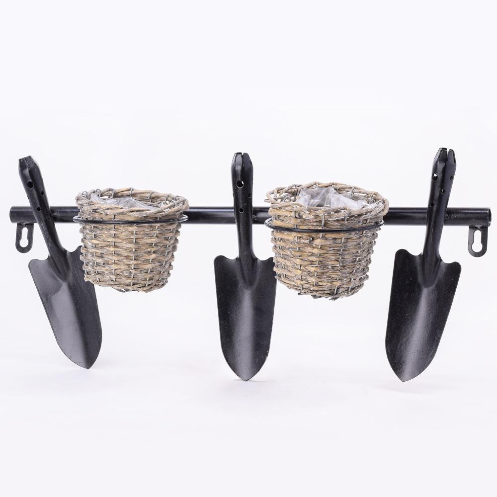 Dekorácia Dekor. lopatky + 2xprút. kôš na stenu 60cm