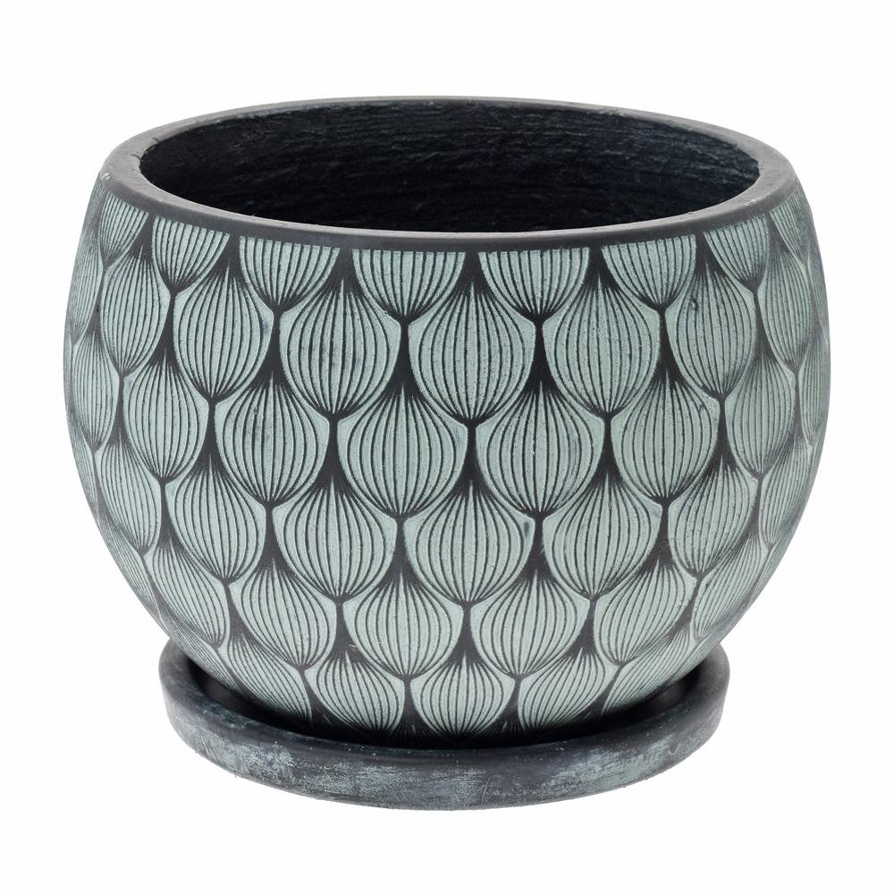 Dekorácia J71 kvetináč + miska guľa jill zel./čierna 40h26cm l
