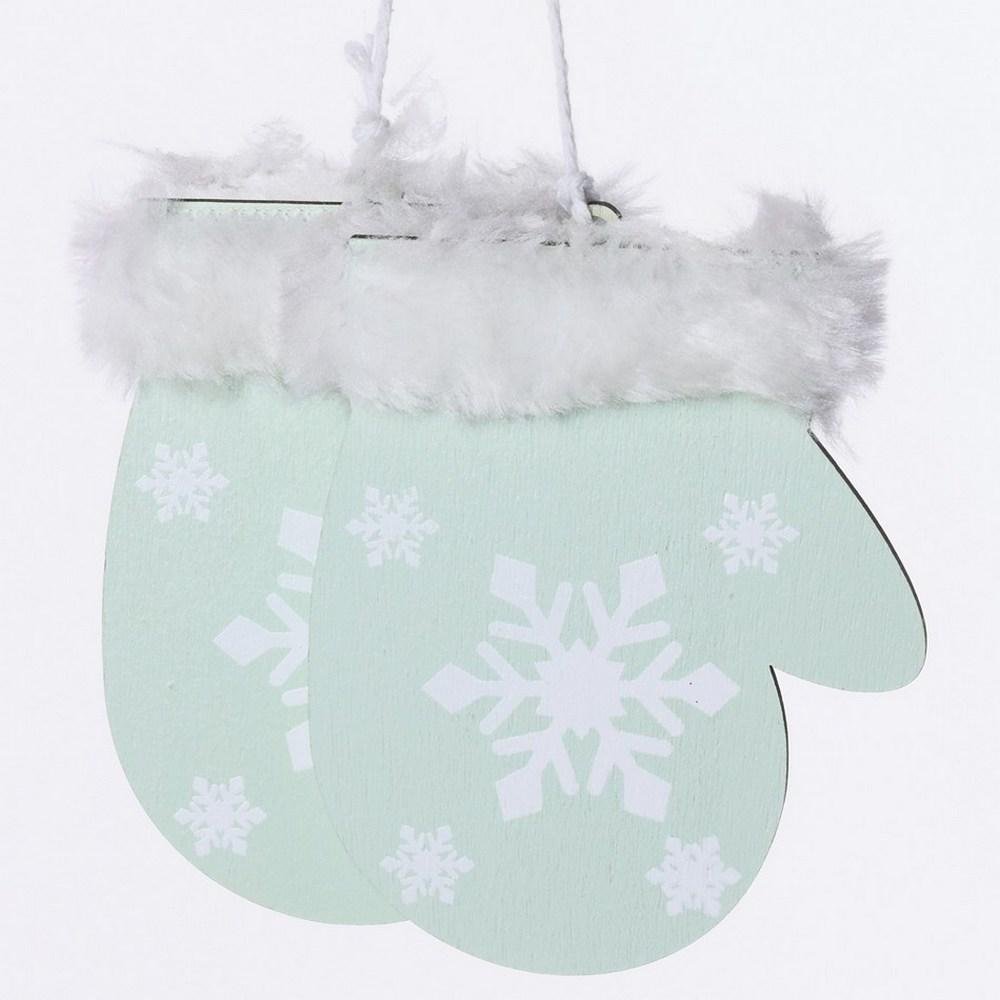 Dekorácia Drevené rukavice záves zelené 11x7cm