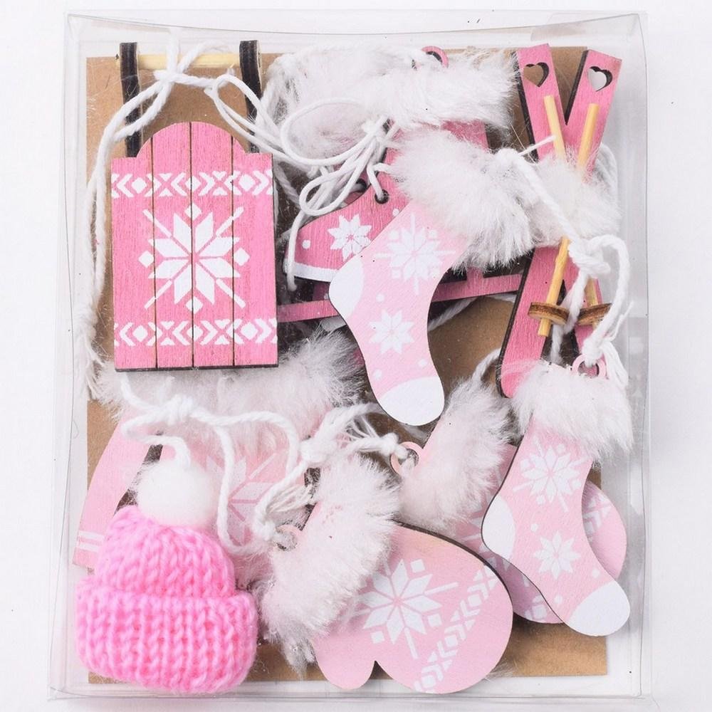 Dekorácia Drevený záves mix ružová s/6 13x11x2cm