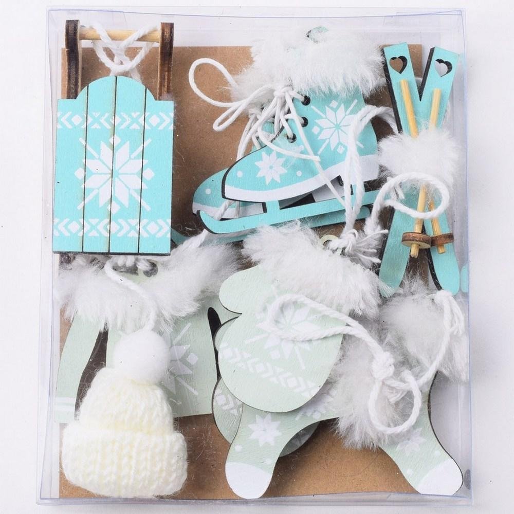 Dekorácia Drevený záves mix zelená s/6 13x11x2cm