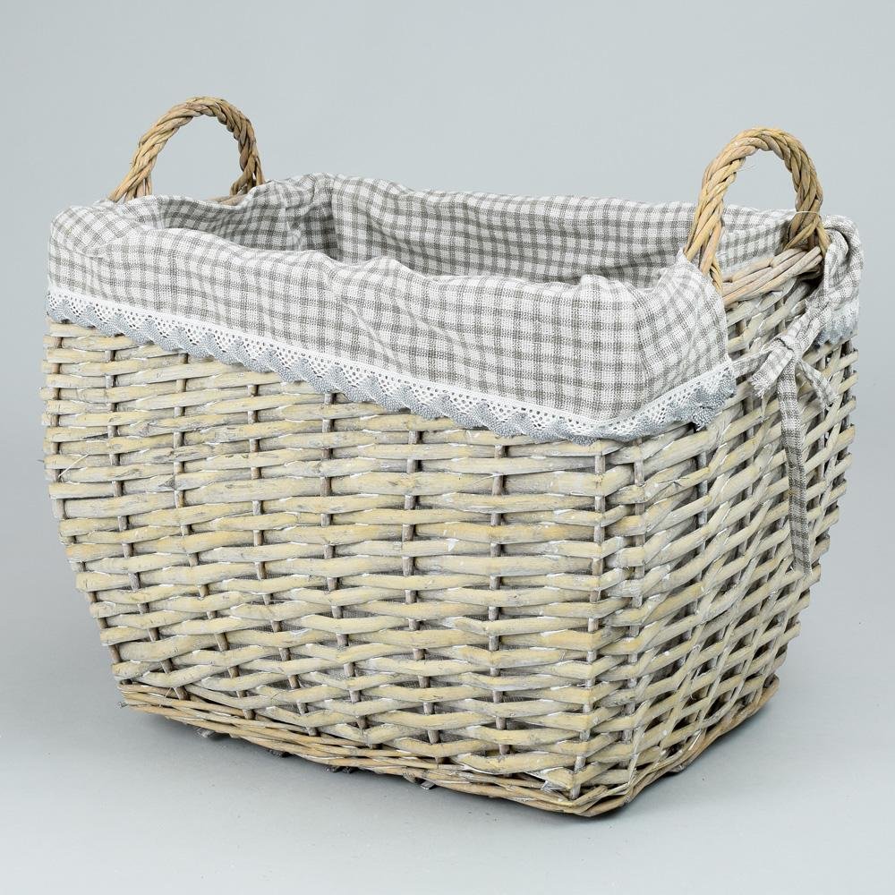 Dekorácia 337fl/s prútený košík šedý vzor kocka l:36x28x28cm