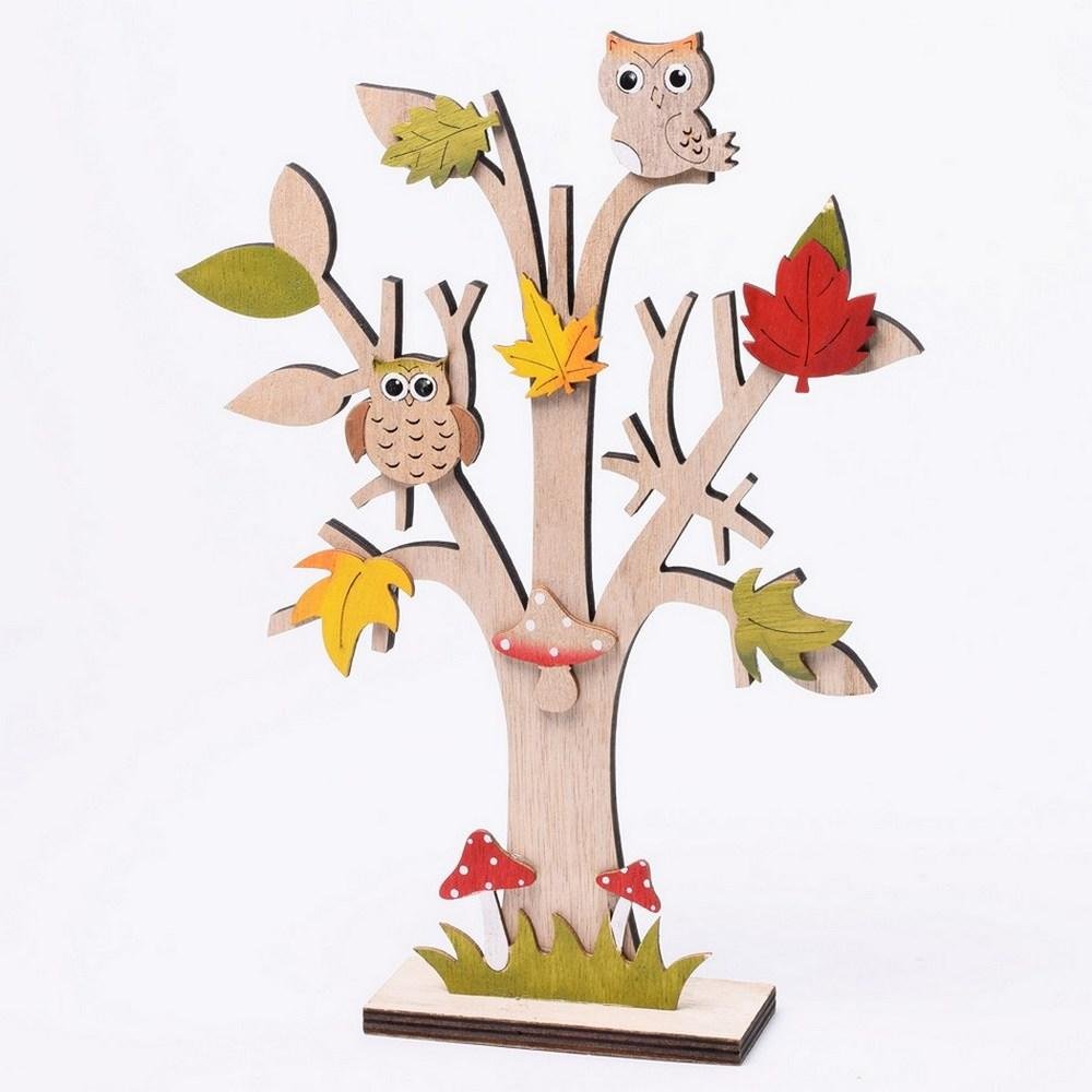 Dekorácia Drevený stromček sova 28x22x4 multi