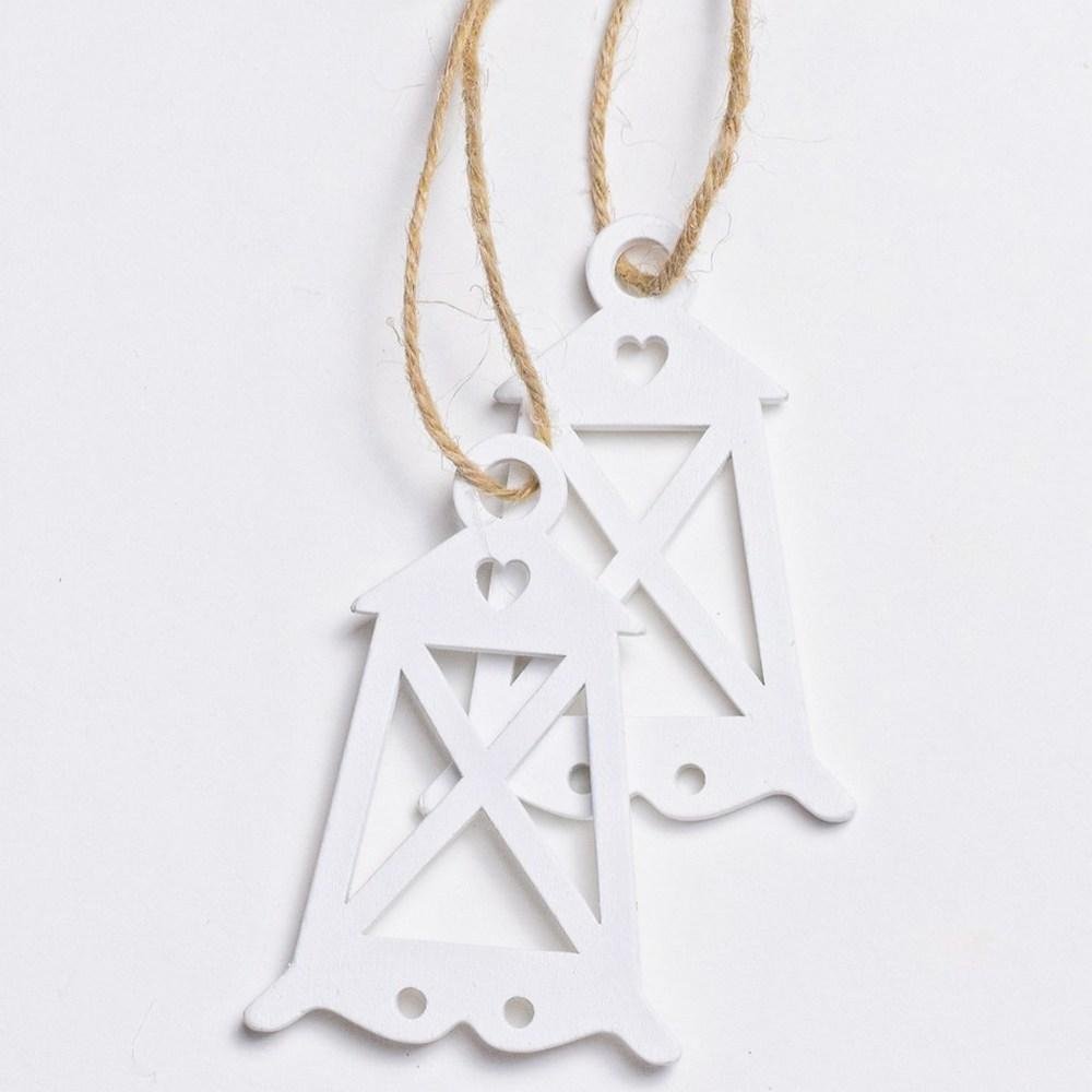Drevený lampáš biely s/2 5,5x8,2cm