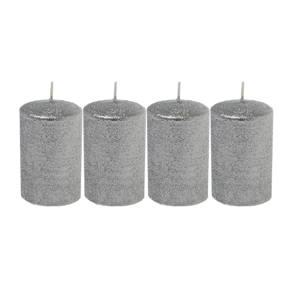 Dekorácia Valec 4-pack gliter strieborný 6x9
