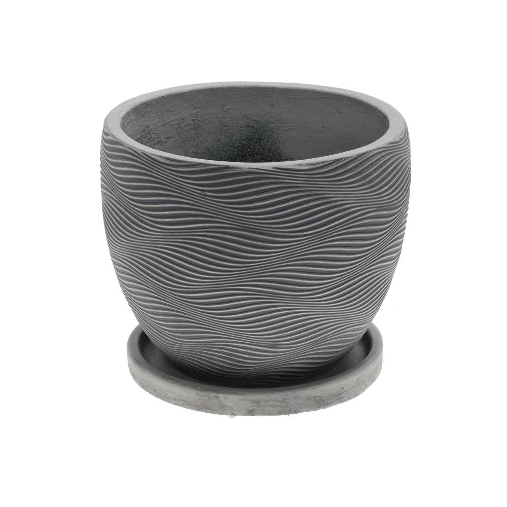Dekorácia J125 kvetináč + miska kiki antik šedá 24x19,6cm s