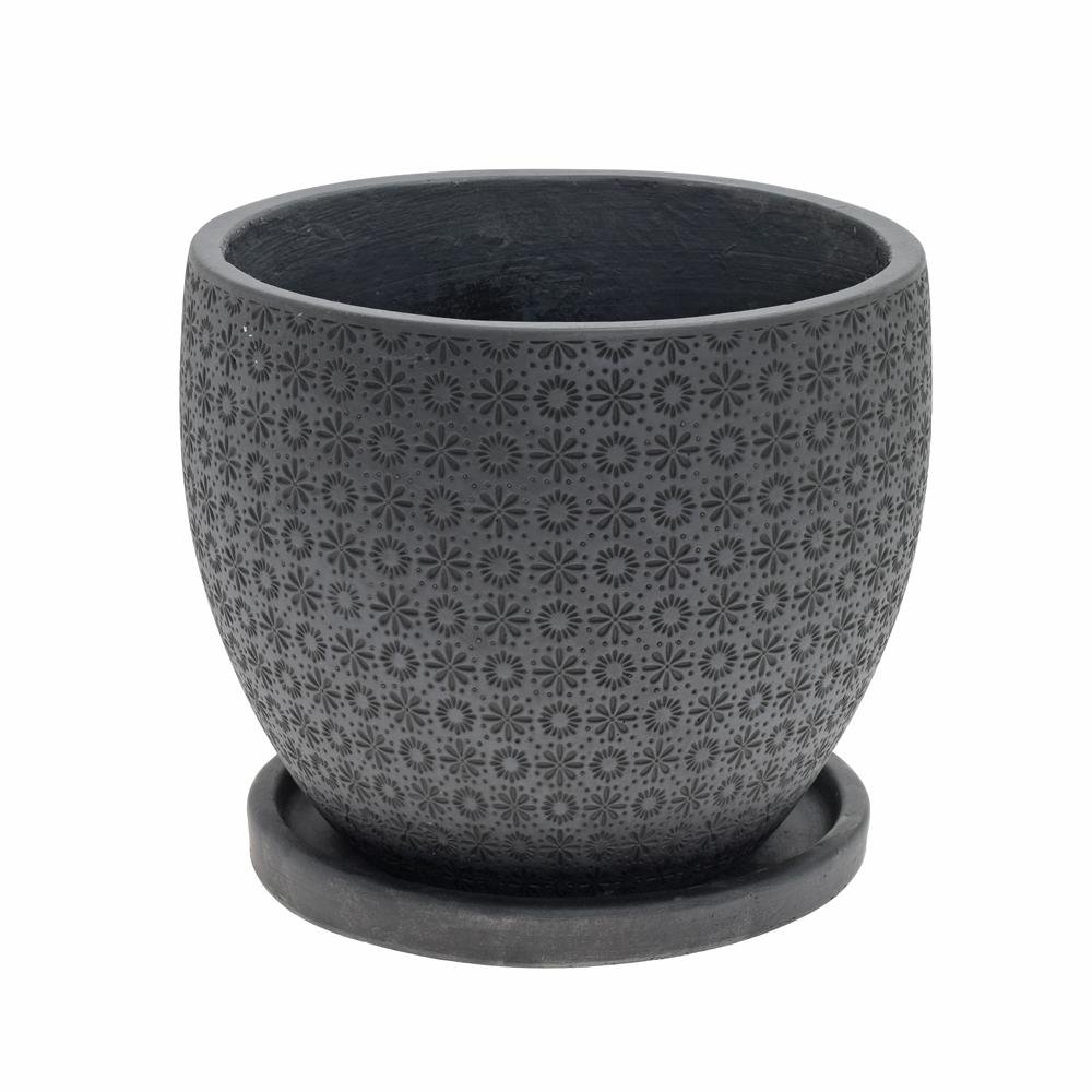 Dekorácia J135 kvetináč + miska paige čierna 24x19,6cm xs