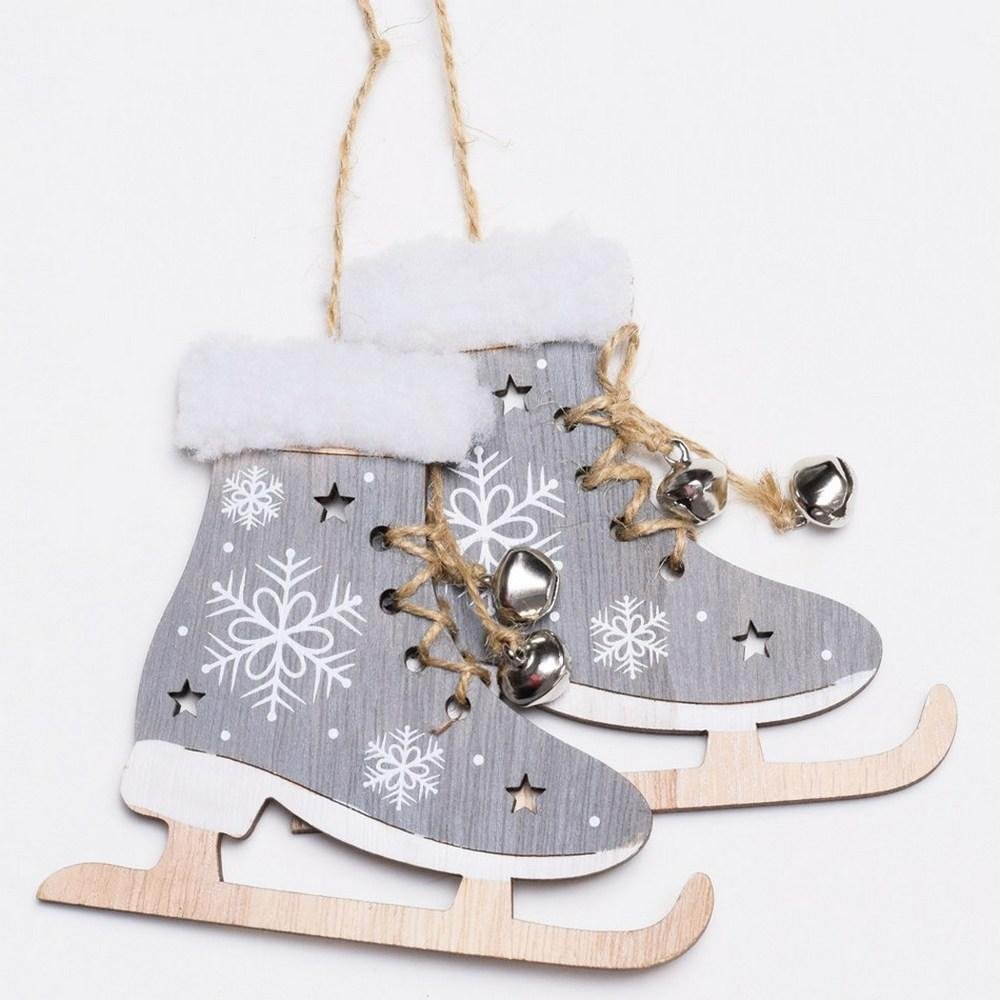 Dekorácia Drevené korčule šedé 48x11x1