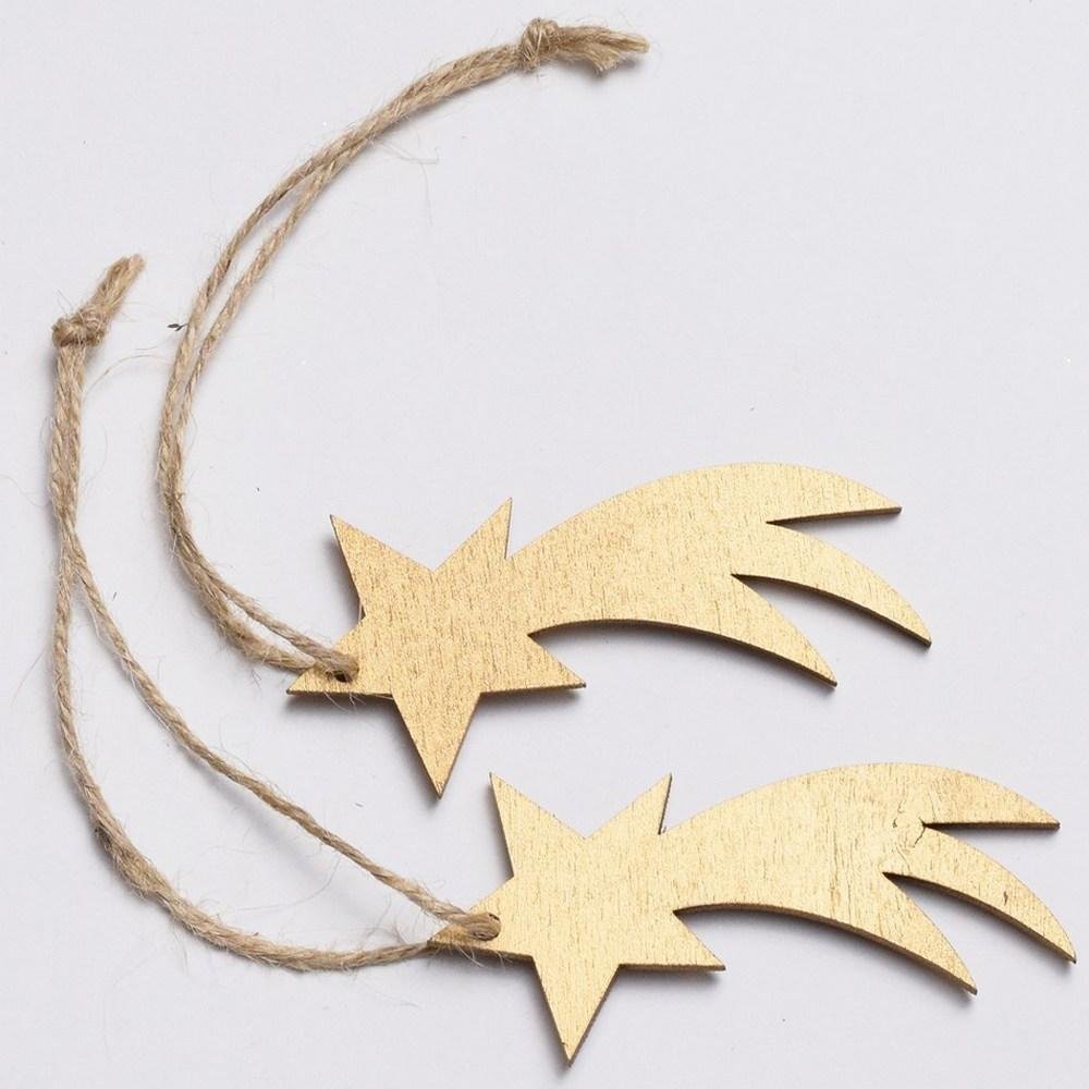 Dekorácia Drevená kométa zlatá 8x4x0,5 s/2