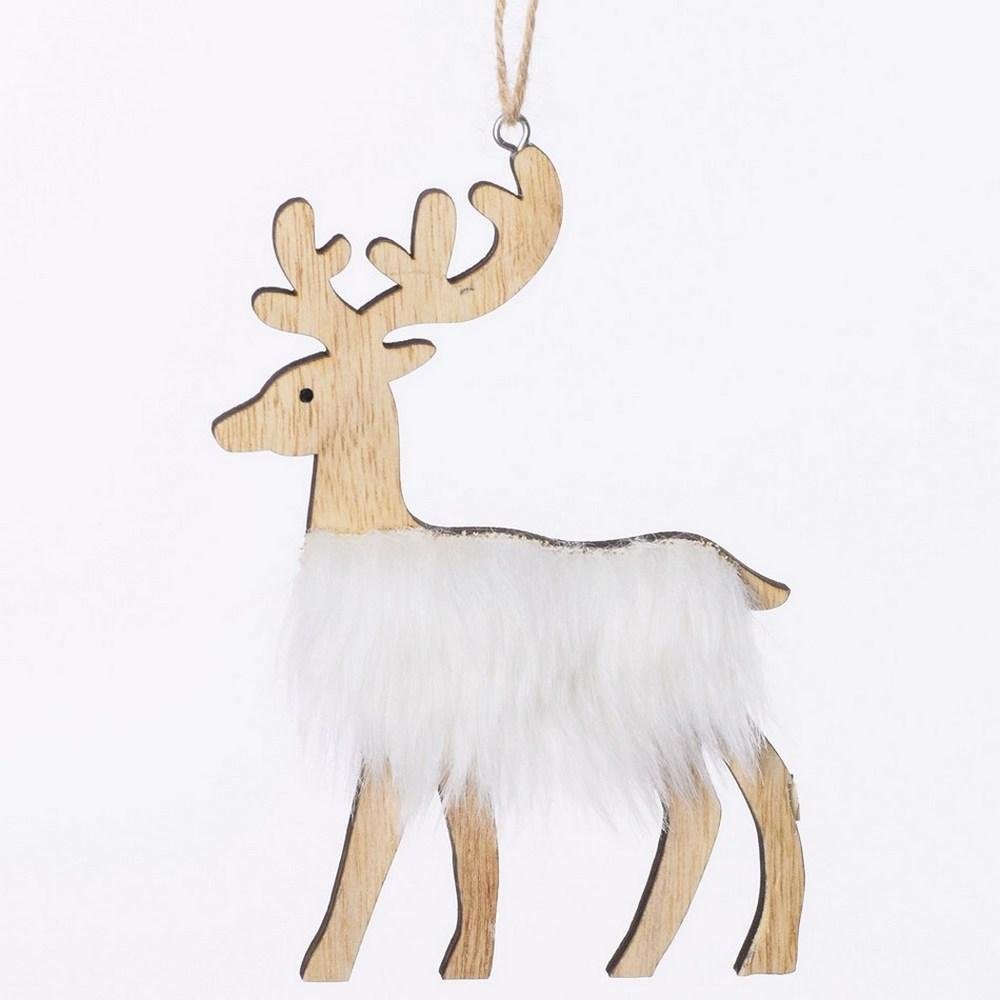 Dekorácia Drevený jeleň biely 10,3x14,8x0,5cm
