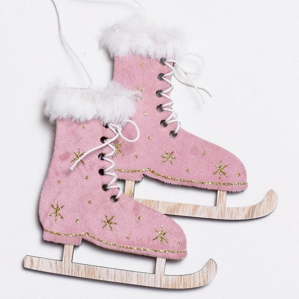 Dekorácia Záves korčule drevo s/2 10cm ružové
