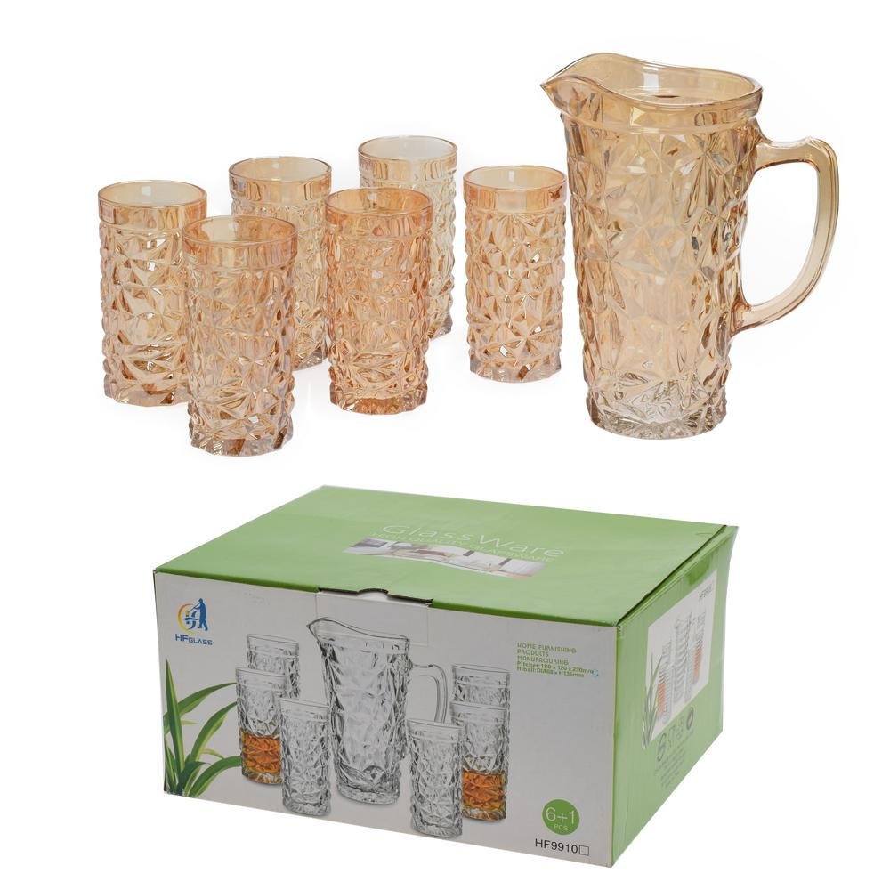 Džbán+poháre sklo s/7 12x23cm/7x13,5cm zlatý
