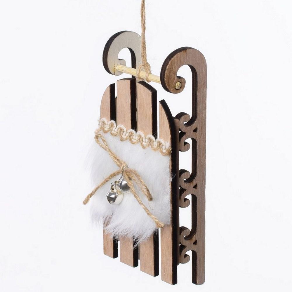 Dekorácia Drevené sane biele záves 15x6x4cm