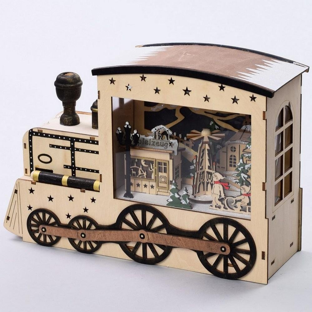 Dekorácia Led hrajúci drev vlak 30x10x21cm