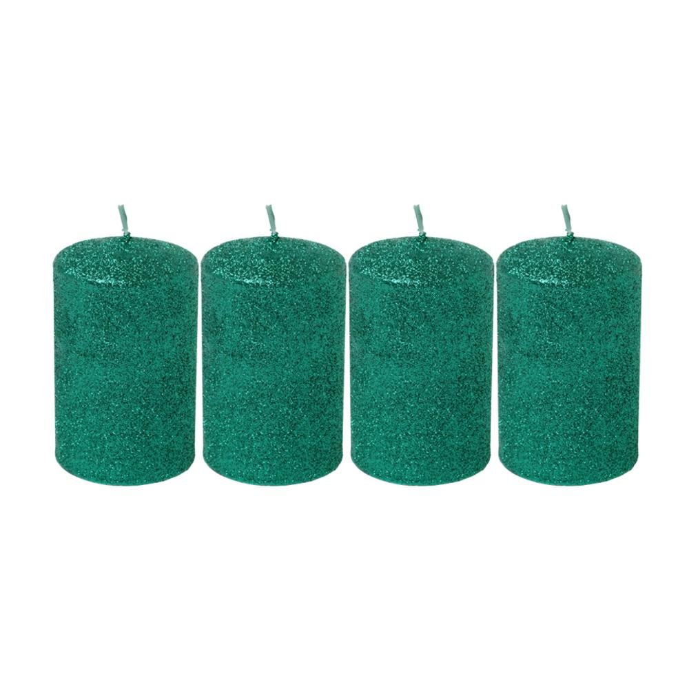 Dekorácia Valec 4-pack gliter zelený 6x9