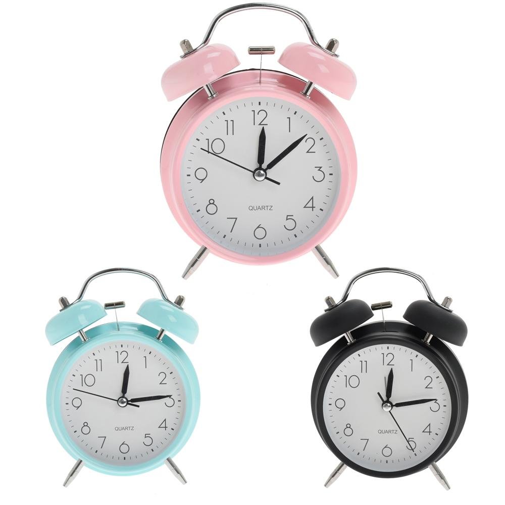 Dekorácia Hodiny budík kov 10cm ružové