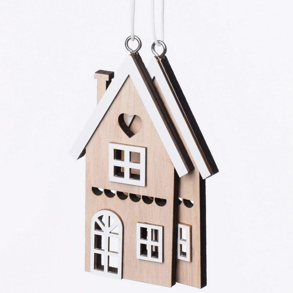 Dekorácia Záves dom drevo s/2 natur+biely 4,9x9x0,7cm
