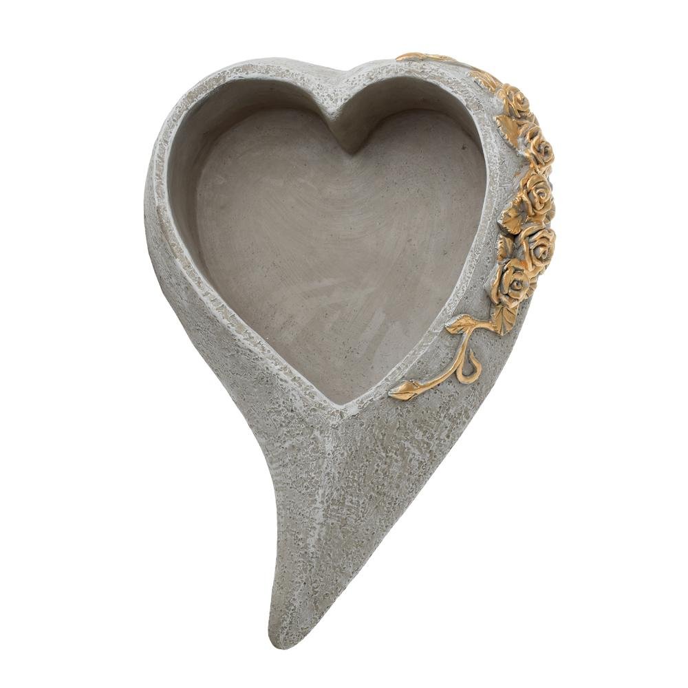 Dekorácia Obal srdce cement sivo zlatá ruža 50x35x13cm